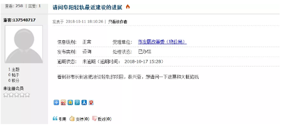 近日,有网友在市政务论坛上留言:“看到孙市长到合肥洽谈轻轨的项目,很兴奋,想请问一下进展和大概路线。”