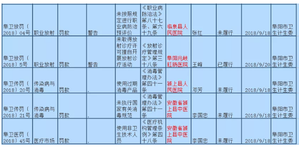 近日,阜阳市卫生计生委2018年9月中旬卫生行政处罚案件一览表公布,涉及阜阳多家医院和大家熟知的柏力健身等多地。具体信息如下↓其中,柏力健身管理有限公司因安排未取得有效健康合格证明人员直接为客户服务被